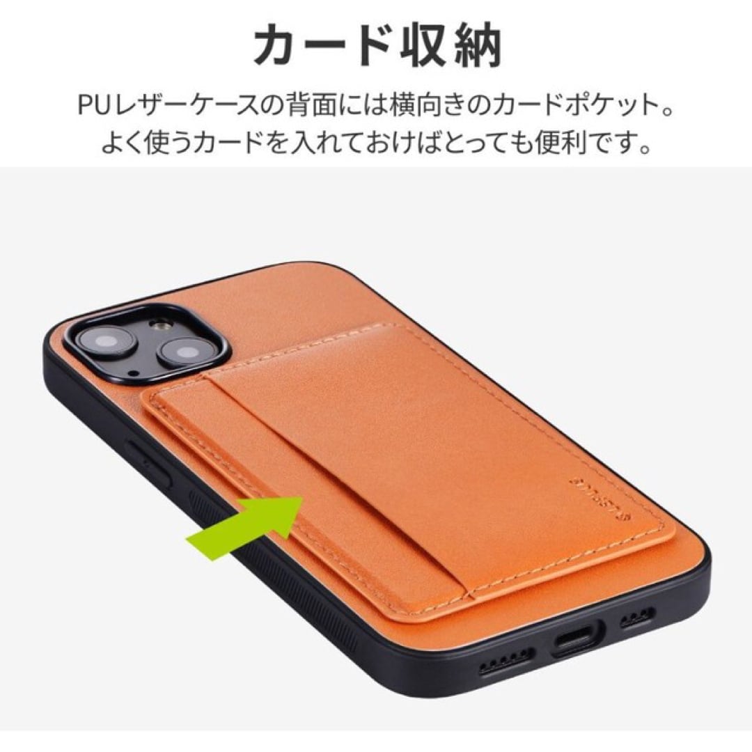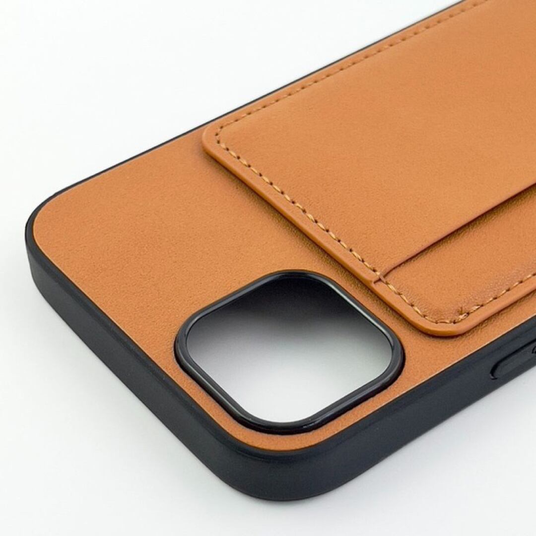 ■ 新品 未使用 iPhone 13 ポケット兼スタンド付PUレザーケース キャメル