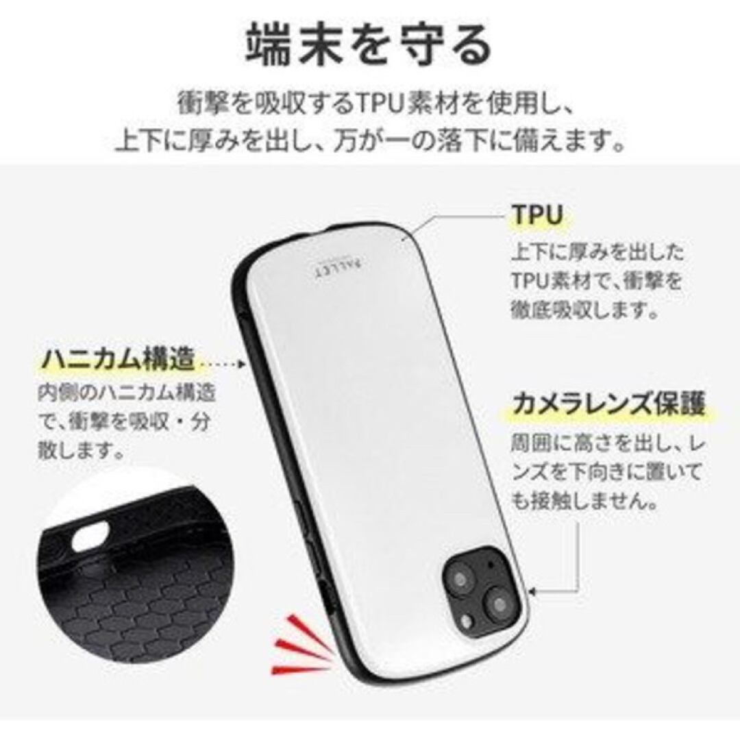 ・【対応機種】iPhone13 (6.1inch 2眼)【参考基準価格】2,480円【商品説明】軽くて強いTPU+PET素材の耐衝撃ハイブリッドケース[耐衝撃][超軽量][極薄]衝撃を分散するハニカム構造耐衝撃TPUと、鮮やかな発色と光沢感が美しいPETのハイブリッドケース上下がなめらかにラウンドした薄型設計で持ちやすいボタンやカメラレンズをしっかり保護する精密設計ストラップホール搭載★湾曲した上下部のデザイン端末が落下する際、横方向より縦方向に落ちる傾向があるため、上下部のTPUをより肉厚にすることで耐衝撃性を高めました。持ったときは薄型・軽量設計で手に馴染みやすい設計です。★側面と背面にハニカム構造を採用ケース背面内部の構造をハニカム構造にすることで、落下などの衝撃から端末を守る構造です。また、新たにケース側面内部にもハニカム構造を採用しており、従来品よりも耐衝撃性能がアップしました。★精密設計スピーカーや充電口の周囲、ボタン周囲まできっちり保護する精密設計です。★ストラップホール付きストラップを付けれる便利なホール付き。★MIL規格取得製品★端末から突出したカメラ部分に合わせたカメラ保護【機能】・耐衝撃・ストラップホール付・薄型【材質】TPU + PET【カラー】ホワイト (白)※外箱を外し簡易包装での発送になります。