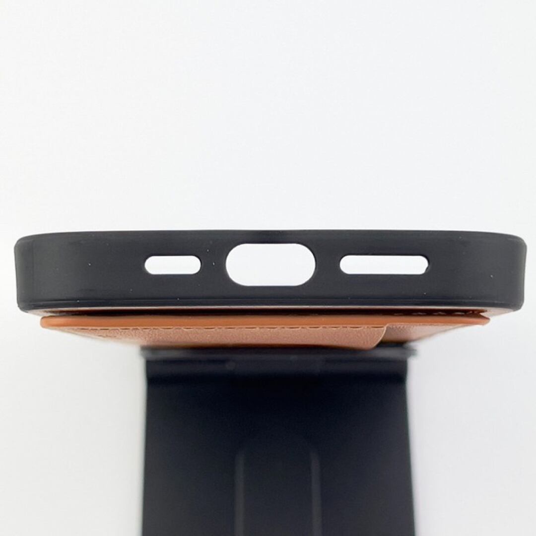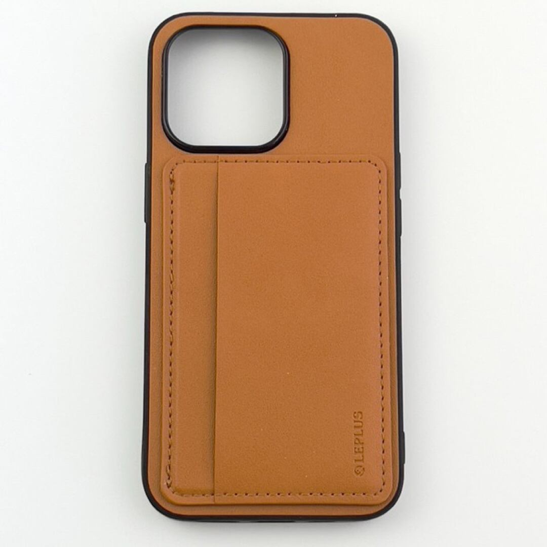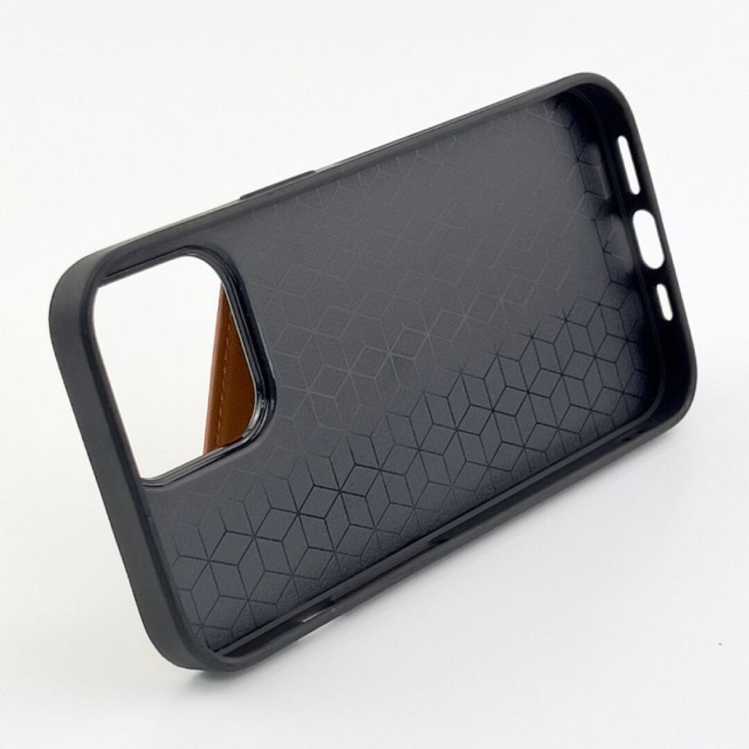 ■ iPhone 13 Pro ポケット兼スタンド付PUレザーケース 茶 キャメル