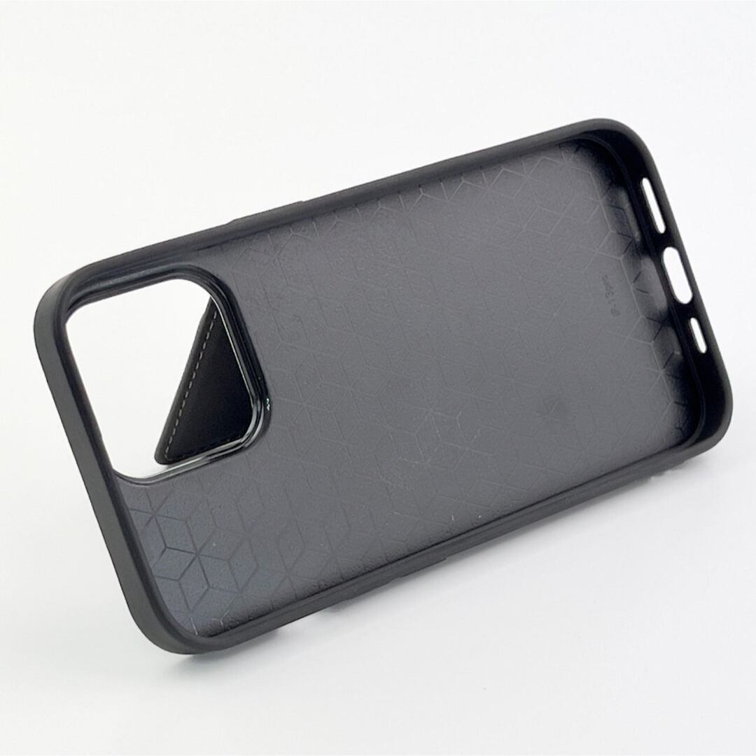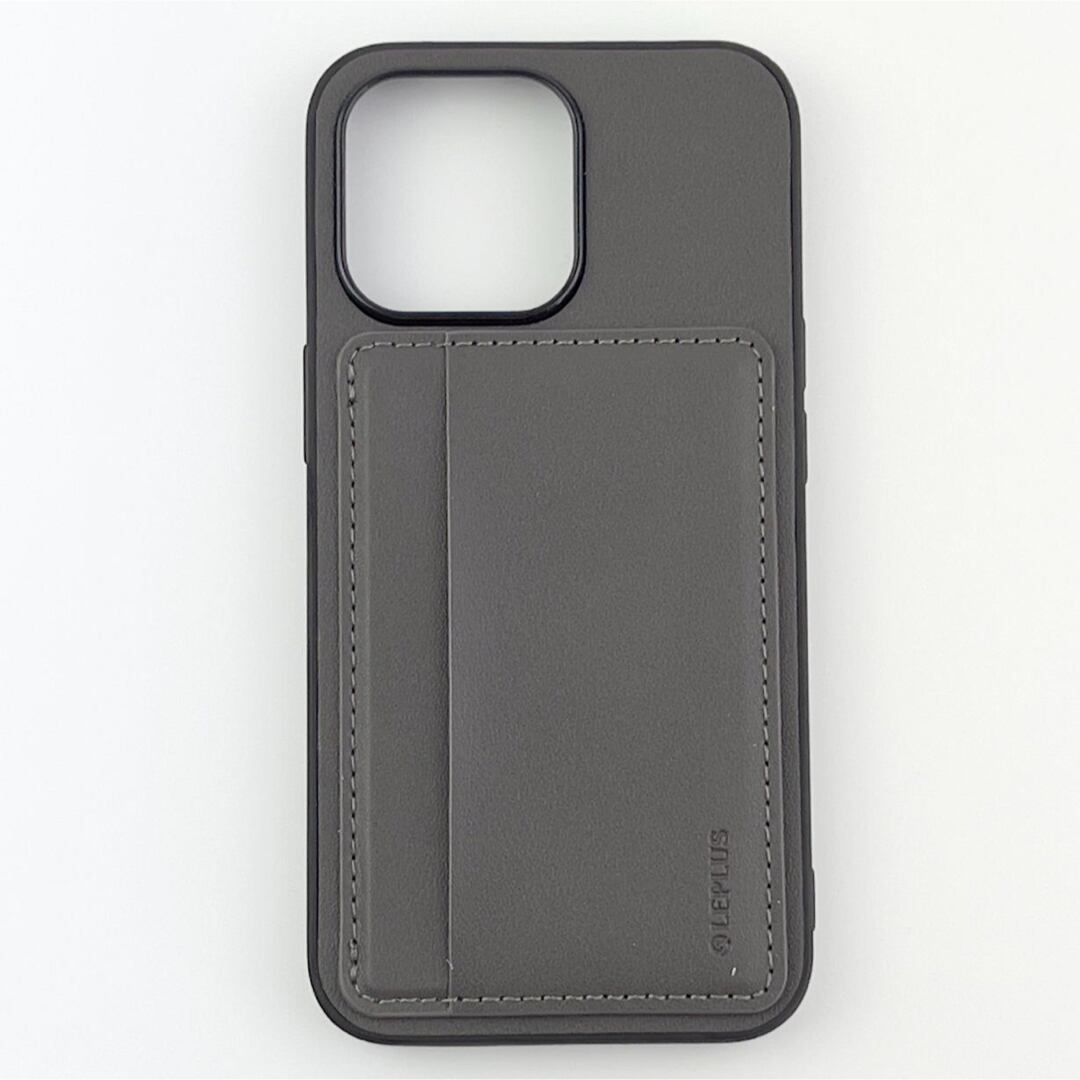 iPhone 13 Pro ポケット兼スタンド付PUレザーケース ダークグレー 【B1213】
