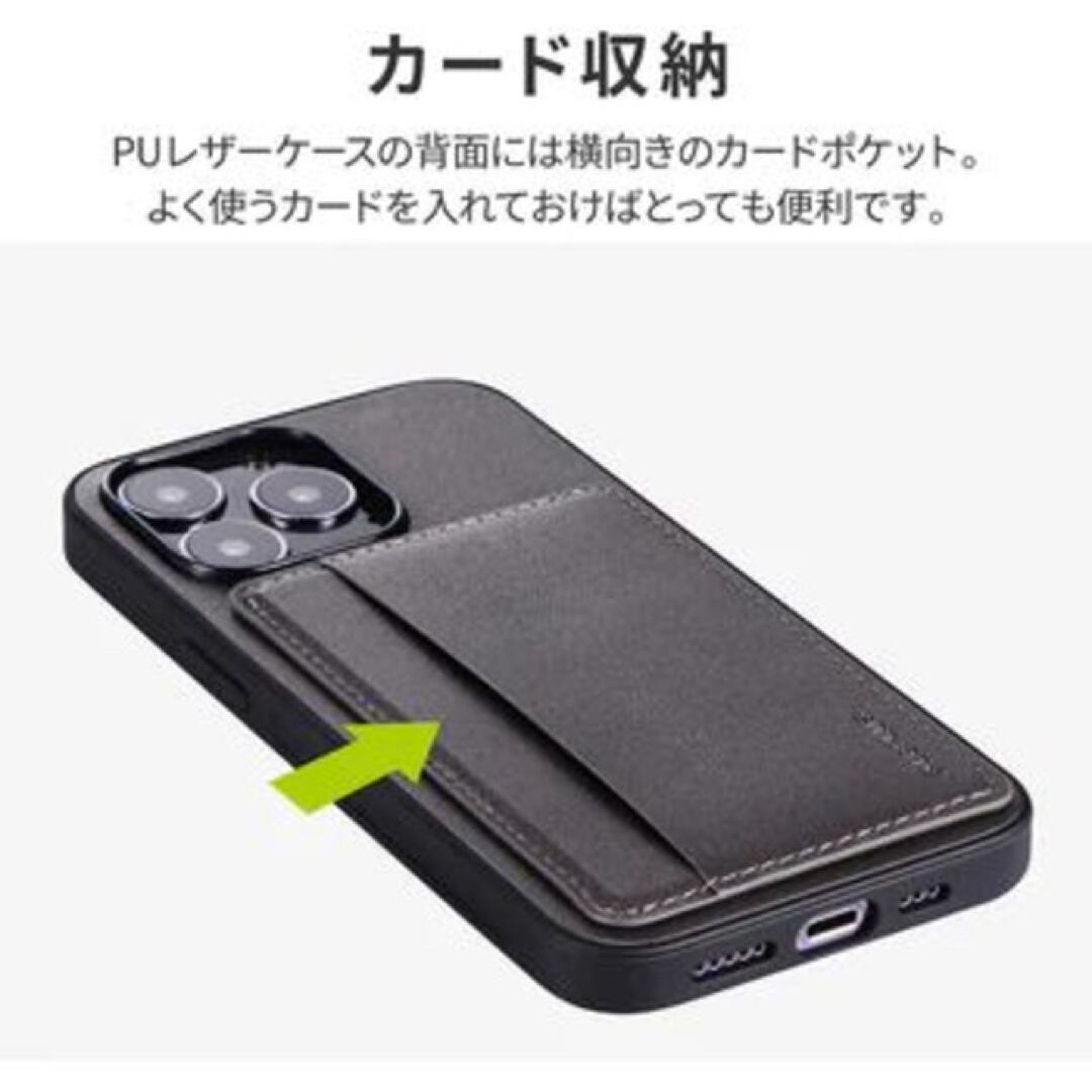 ・【対応機種】iPhone13Pro (6.1inch 3眼)【参考基準価格】2,980円【商品説明】スリムなのにマルチな機能、耐衝撃ハイブリッドケース背面ポケットがスタンドに変化するPUレザーケース逆さに持ってもカードが落ちにくい横向きポケット動画視聴にも最適薄型マグネットでポケットをピタッと固定柔軟性の高いTPUケース採用ストラップホール搭載★シンプルなのに、機能的で使いやすい手に持ったときにカードが下に落下するのを防ぐため、横向きに差し込むタイプのカードポケットを使用。また、側面はグリップ感のあるTPU素材に細かな溝を設けることで持ちやすさをさらに高めました。★スマートなスタンド機能ポケットは動画視聴時などに便利なスタンドとしても使用可能。使わないときはマグネットでしっかり固定でき、邪魔にならないよう配慮されています。★精密設計スピーカーや充電口の周囲、ボタン周囲まできっちり保護する精密設計です。★ストラップホール付き★端末から突出したカメラ部分に合わせたカメラ保護【機能】・スタンド機能・ストラップホール付・マグネット付・ポケット付【材質】TPU + PUレザー【カラー】ダークグレー (暗灰)※外箱を外し簡易包装での発送になります。