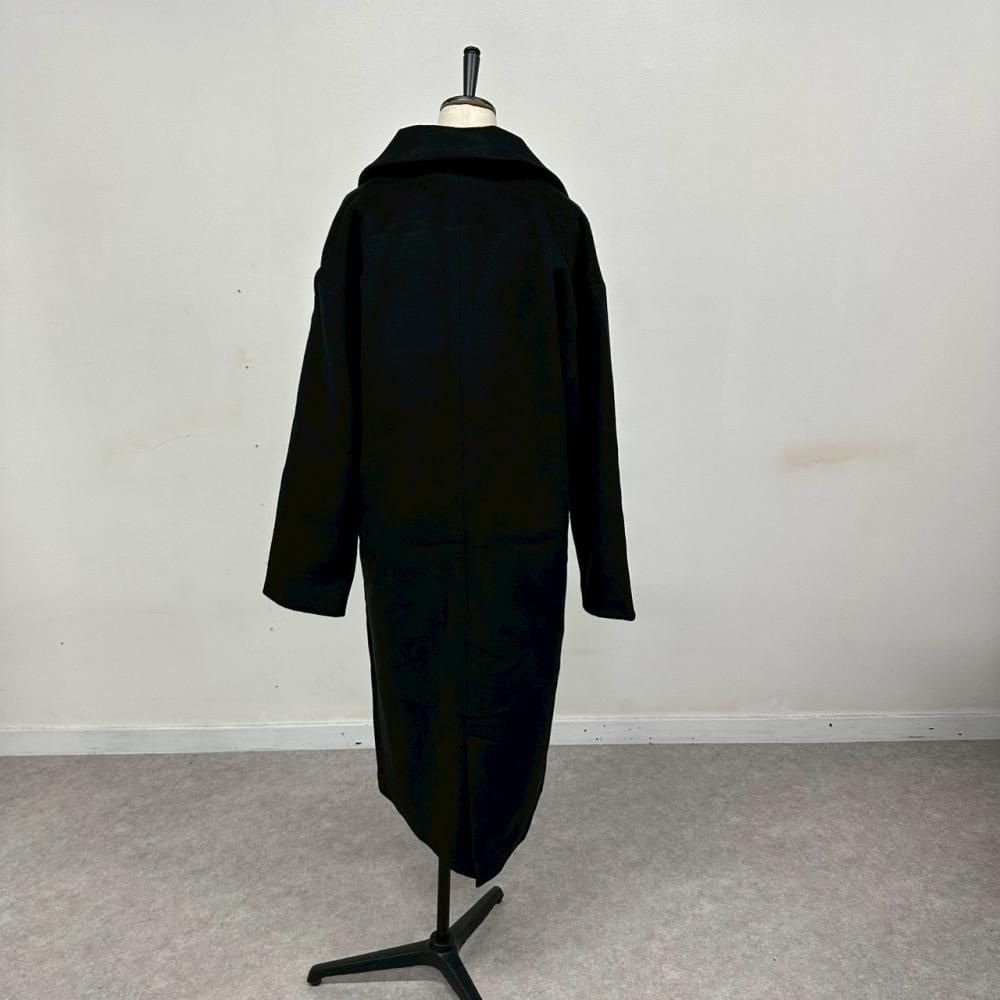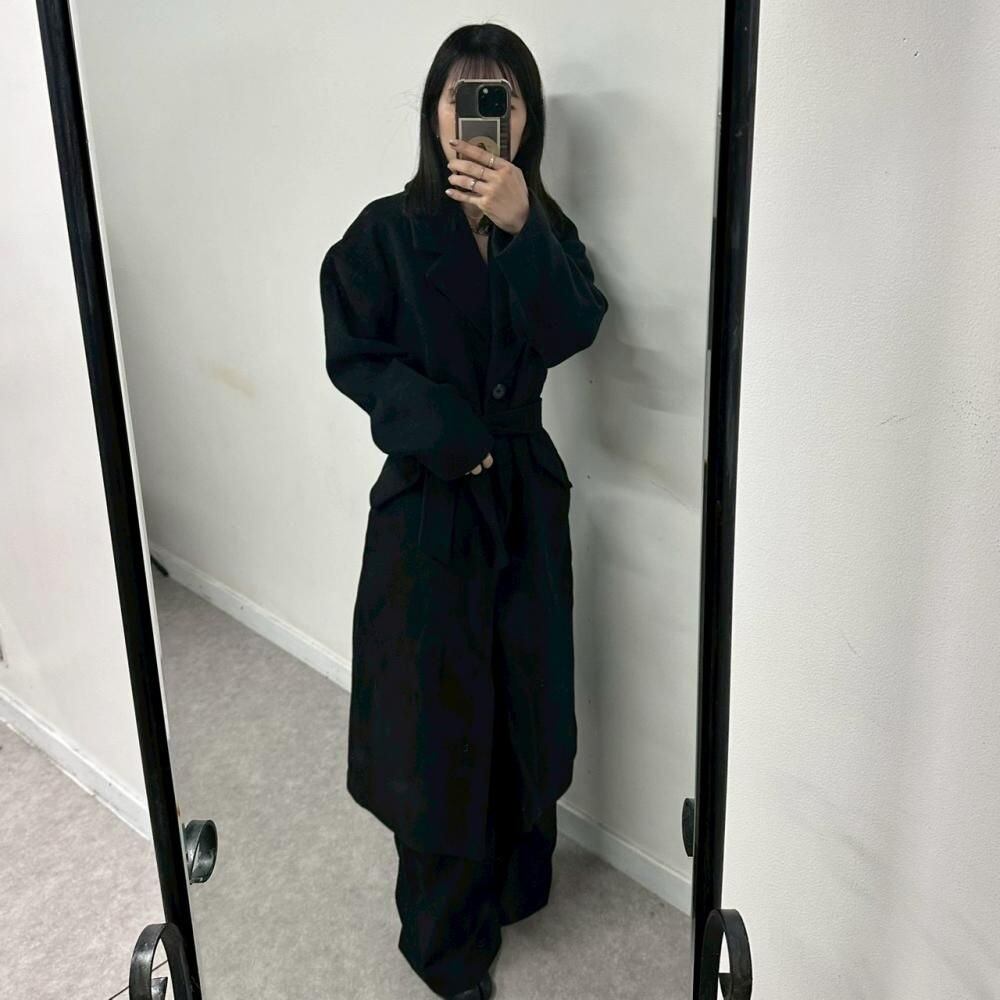 nairo ウール混 シングルベルト ロングコート ブラック S