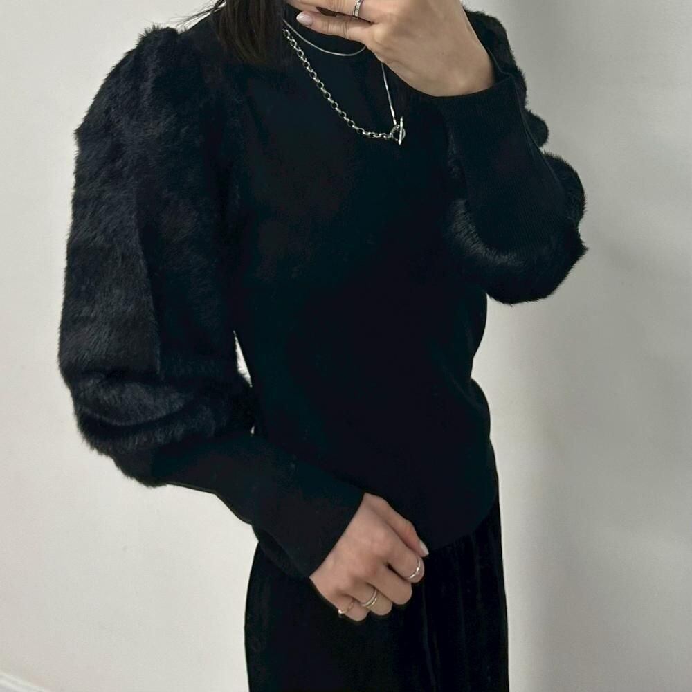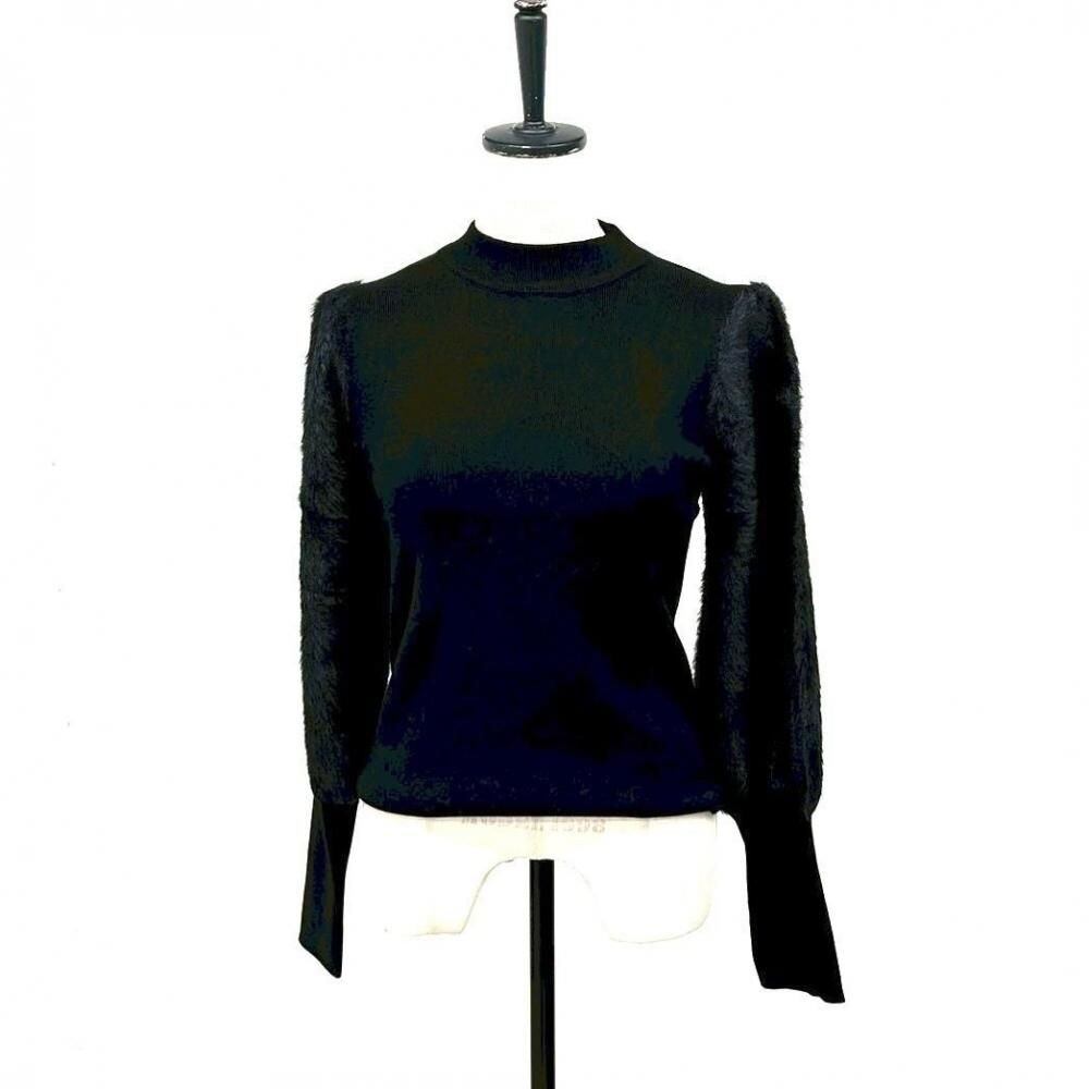 nairo 袖フェイクファー 切り替えリブニット ブラック S