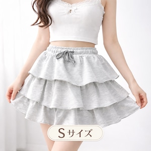 地雷系 3段フリルスカート オートミール S 量産型 ゴムウエスト 華奢見え