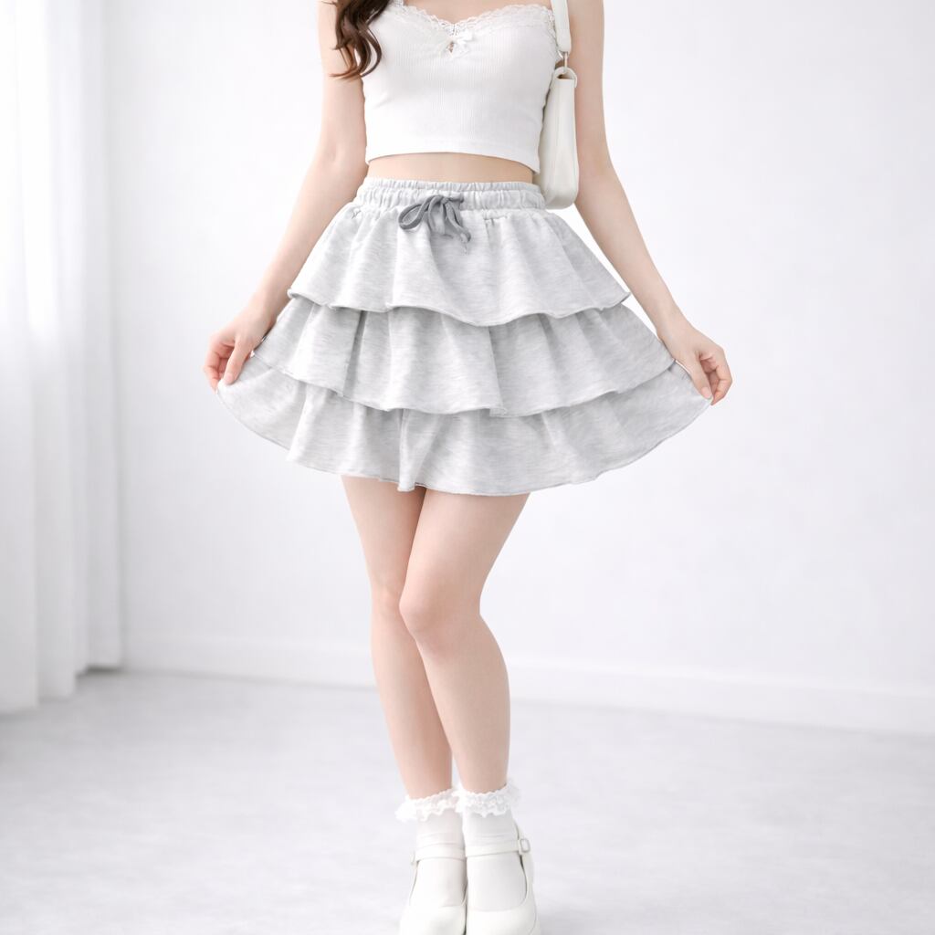 3段フリル アイボリーミニスカート