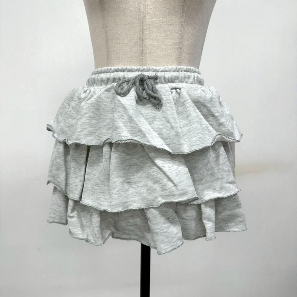3段フリル グレー ミニスカート M 美シルエット ゴムウエスト ボリューム