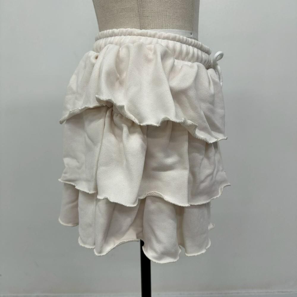 3段フリル アイボリー ミニスカート L 美シルエット ゴムウエスト ボリューム