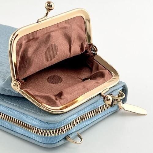 スマホショルダー スマホポーチ スマホ財布 がま口 レディース バッグ ライトブルー
