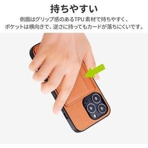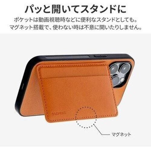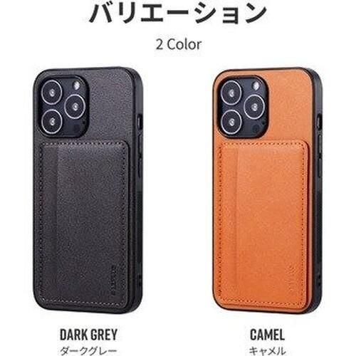 iPhone 13 Pro ポケット兼スタンド付PUレザーケース「SHELL CARD」 キャメル