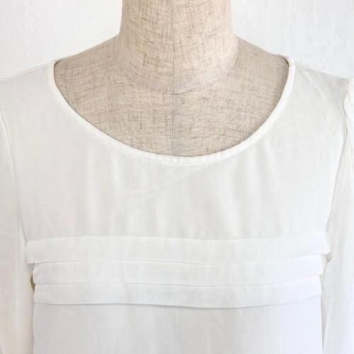 ネックラインはすっきりと仕上げ、落ち着いた上品な印象に。