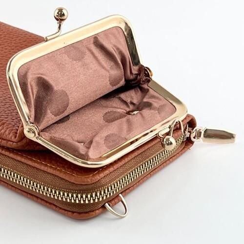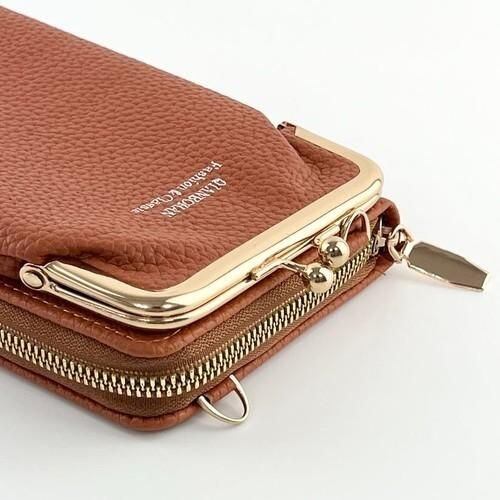 スマホショルダー スマホポーチ スマホ財布 がま口 レディース バッグ 茶色
