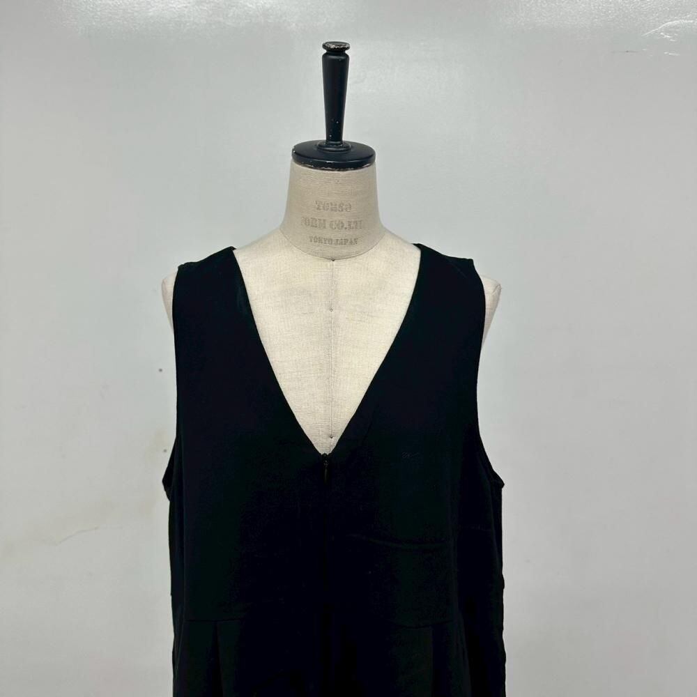 Linenya ウール100% オールインワン ブラック 日本製 Vネック Fサイズ