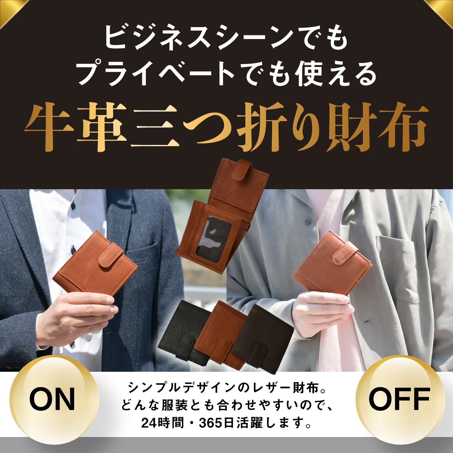 仕事でもプライベートでもシーンを選ばずに使える本革三つ折り財布です。大容量であり、機能性も兼ね備えていて使いやすさは抜群。「仕事とプライベートでわざわざ財布を使い分けるのは面倒だな」と考える方にオススメのアイテムです。